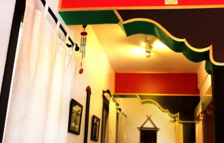 A welcoming space filled with owner's care and touches. Lampshade hand painted by Hoyn.